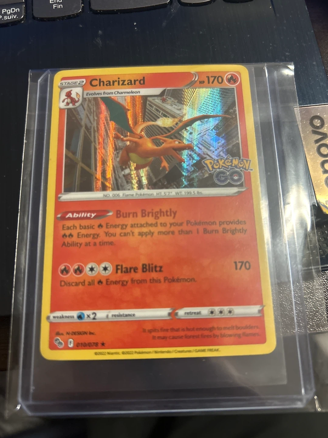 Buy & SellCharizard Pokemon GO CardCharizard Pokemon GO Card$3Selling a Charizard Pokemon GO card. It has the 'Burn Brightly' ability and 'Flare Blitz' attack. A great addition to any collection!WHERE TO MEETCheck LocationView MapSELLERTrevorMountainside100 reviews1 chats·0 favorites·21 viewsSEND CHAT TO SELLERHi Trevor! I’m interested in your listing.Hi Trevor! I’m interested in your listing.Get the Karrot app to chatSign In to chat