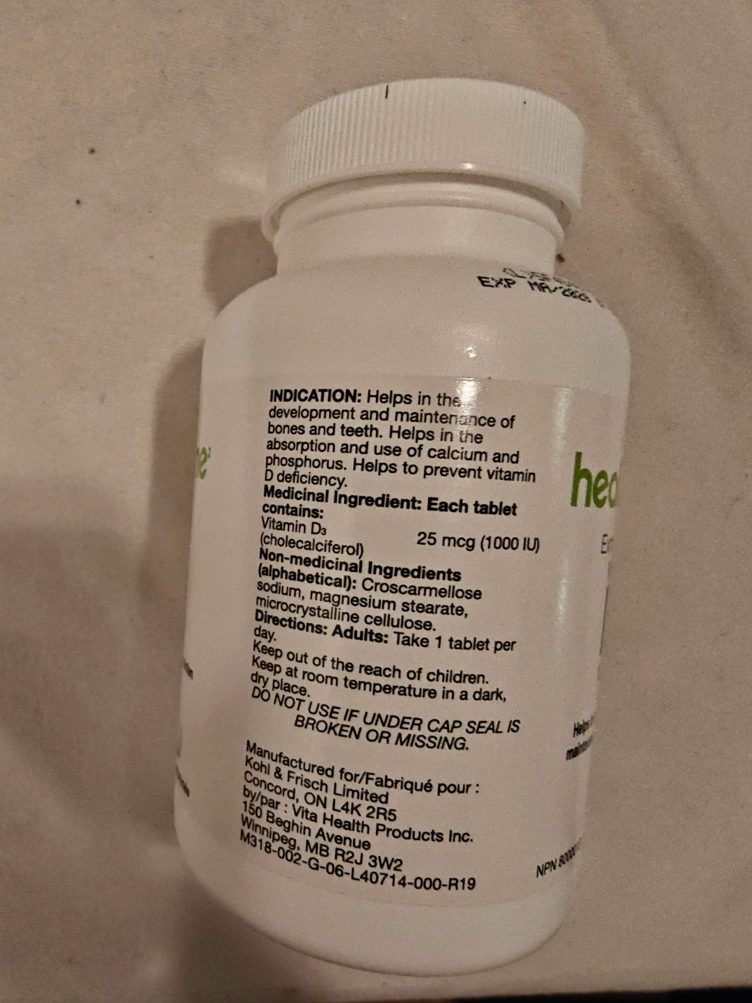 Selling a bottle of Brand new Sealed (never used) healthOne Vitamine D3 1000 UI Extra fort- 180 tablets