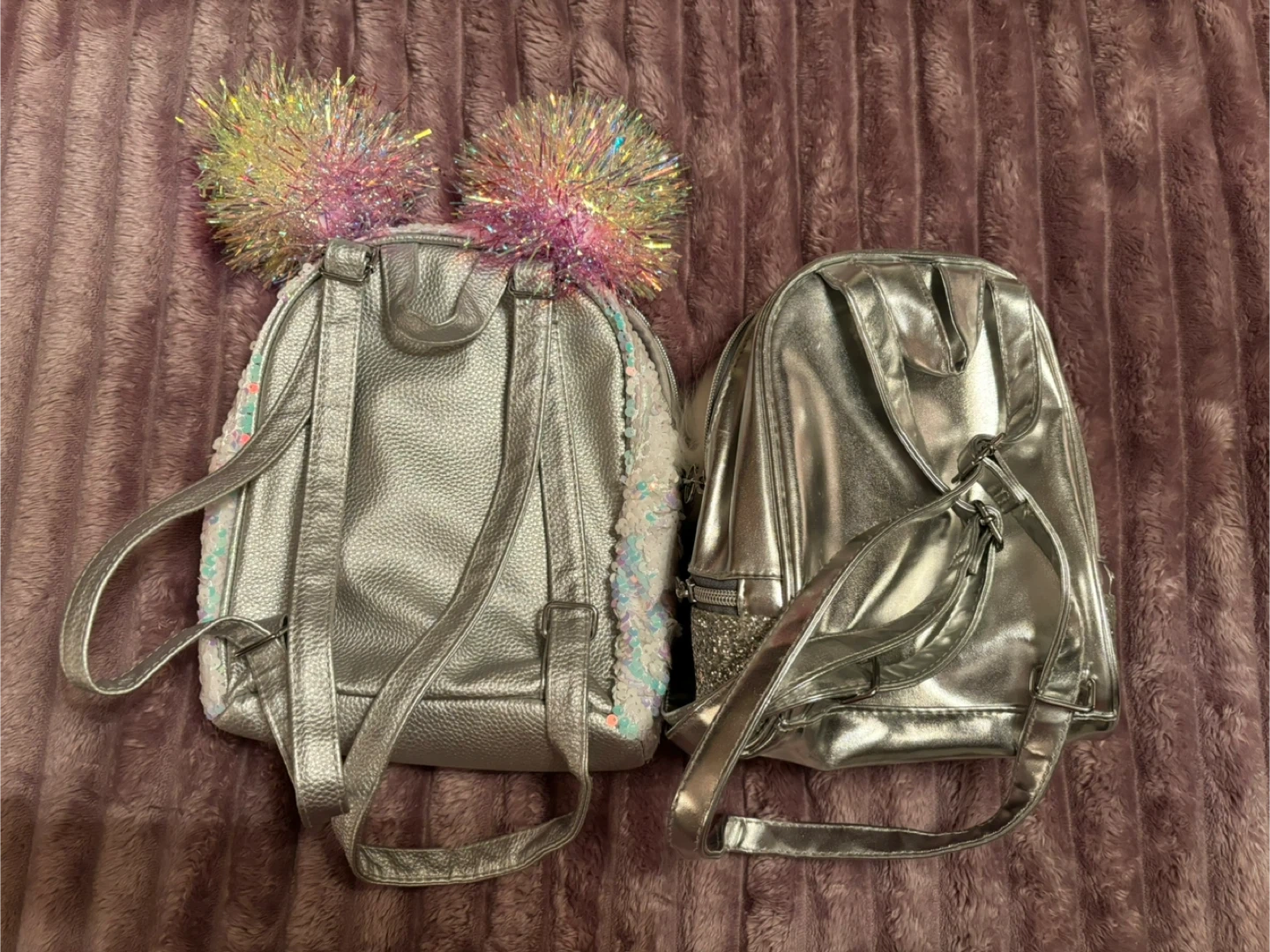 Two zippered mini backpacks with the letter “M”. Barely used and in very good condition. Justice brand.