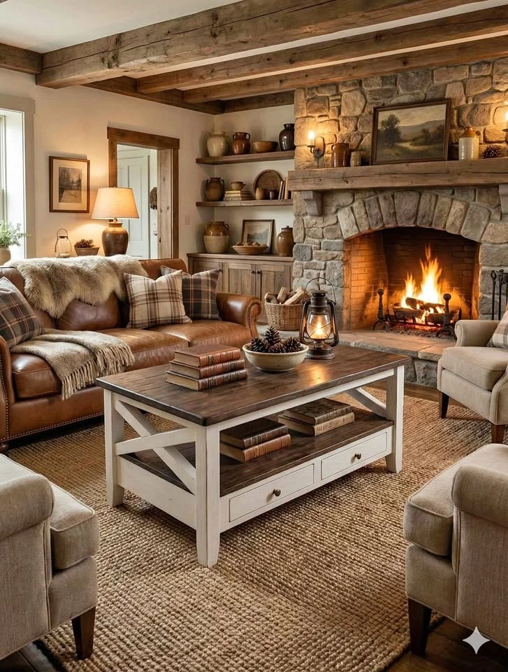Rustic Farmhouse Coffee Table – Thick Solid Top & X-Base