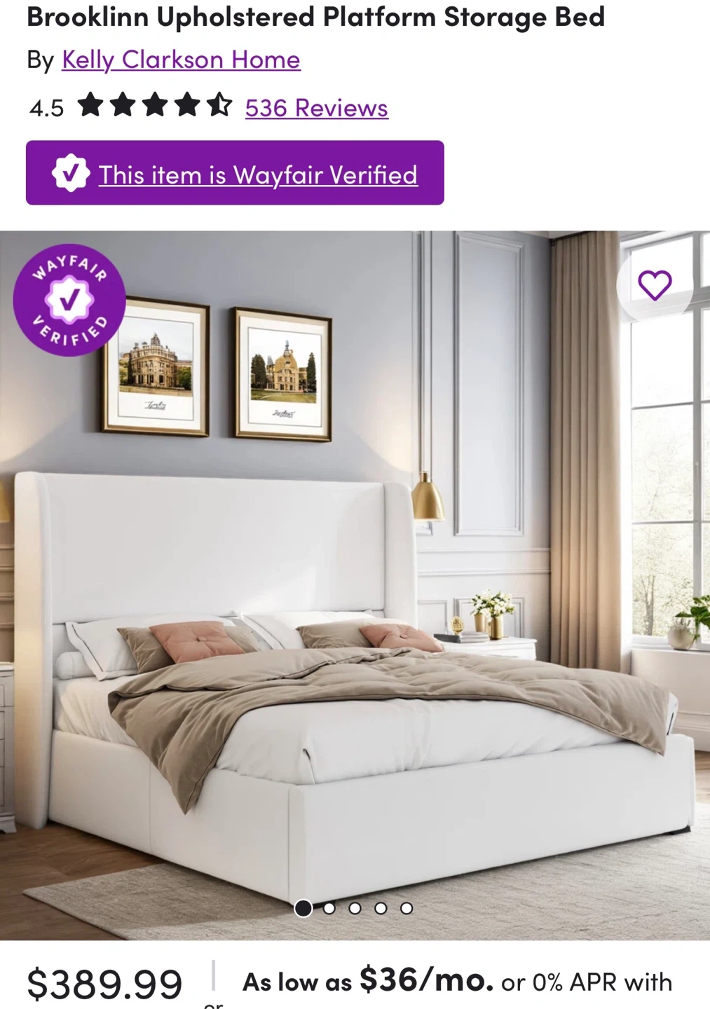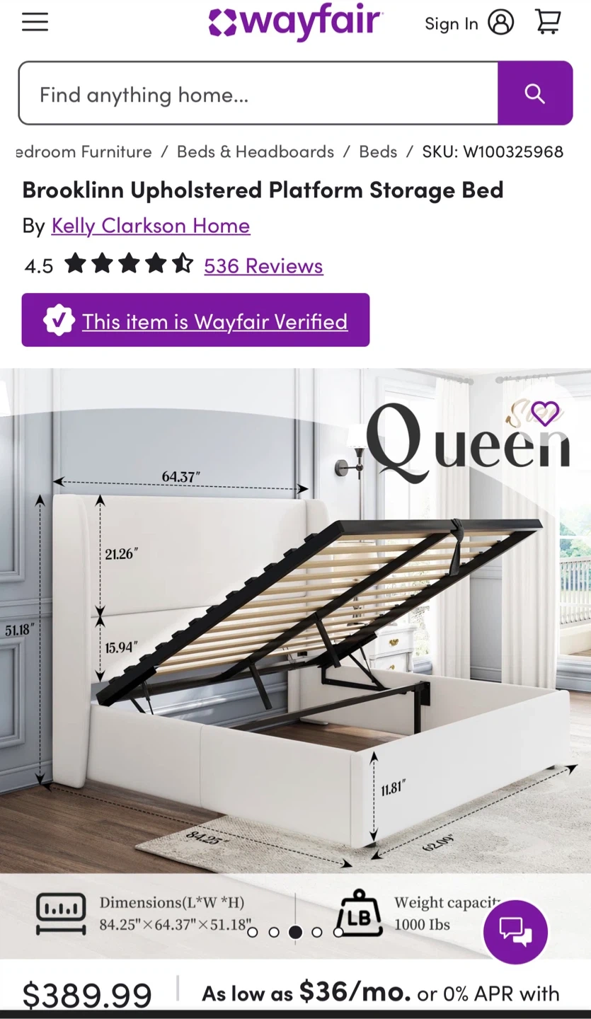 Selling a Kelly Clarkson Home Brooklinn Upholstered Platform Storage Bed. It's in great condition and features a convenient storage platform.