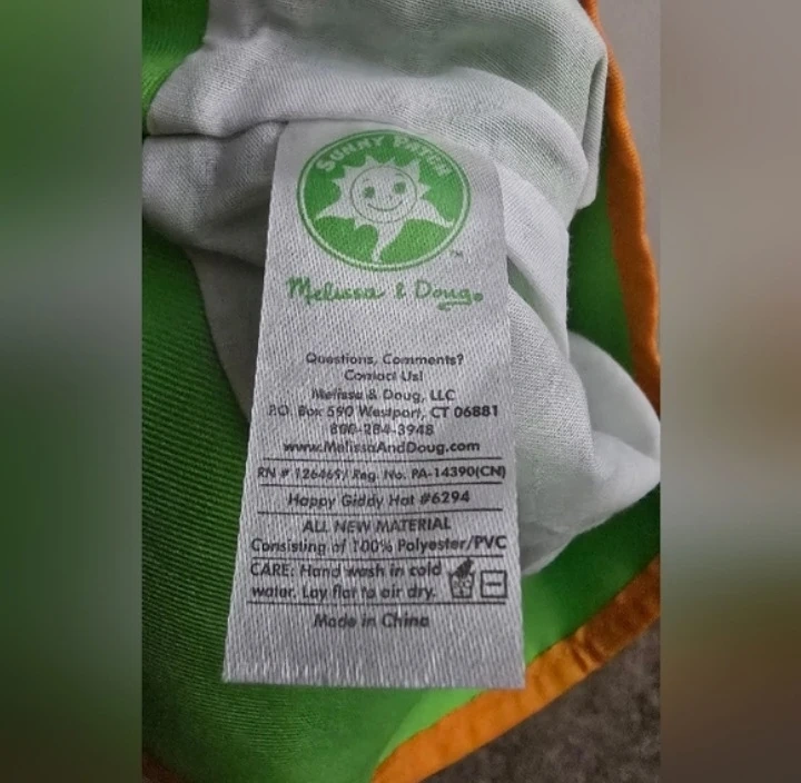 Selling a cute Melissa & Doug Happy Giddy Hat! It's in excellent condition and ready for a new little owner. This hat is made of 100% Polyester/PVC. Hand wash in cold water and lay flat to dry. It features a fun caterpillar design with bright, cheerful colours