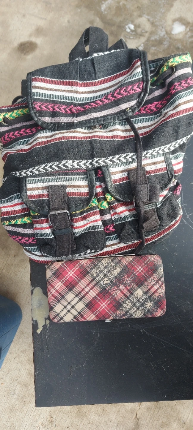 Selling a cute striped backpack and a plaid wallet as a set! The backpack has a unique design with multiple colours, and the wallet has a stylish plaid pattern. They're both in good condition and ready for a new owner