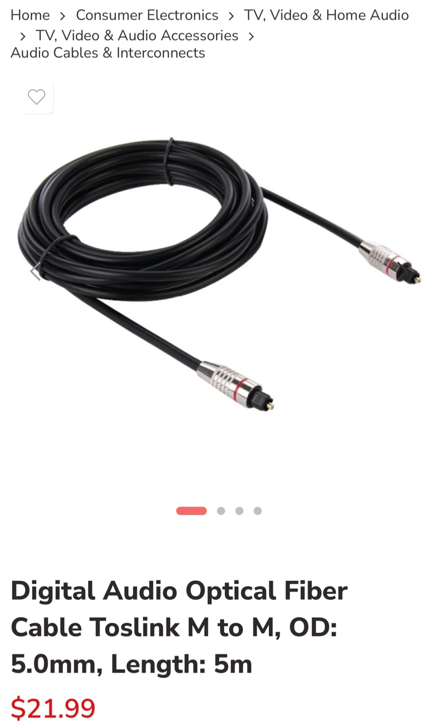 2 m Optical Digital Audio (Toslink) cable – ideal for connecting TVs, soundbars, receivers, game consoles or DACs for clear digital sound.