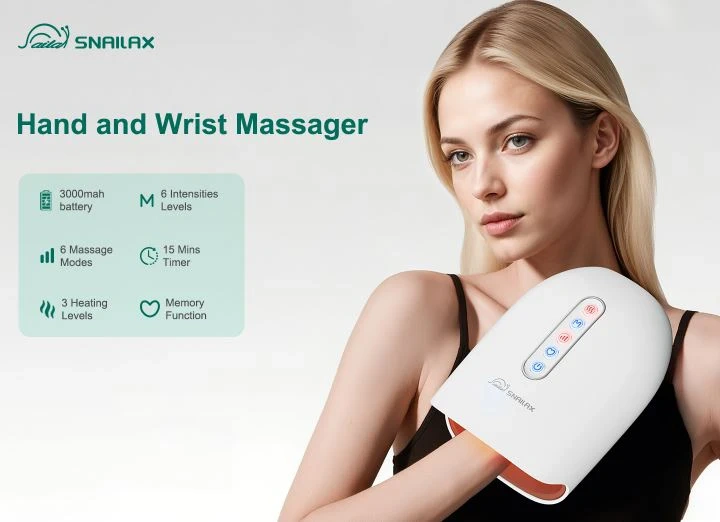 -Snailax 3D Air Compression Hand, Wrist, Palms and Finger Kneading Stretching Cordless Massager
