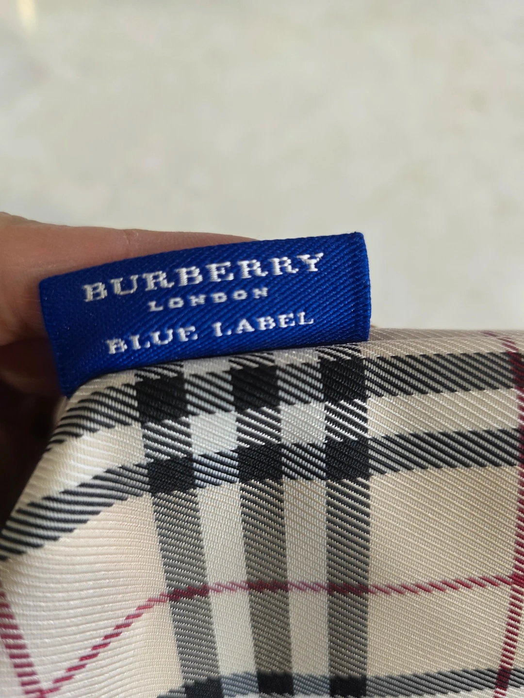 Selling a cute Burberry Blue Label handbag. It has a classic plaid pattern and black handles. It measures approximately 12 inches in length and 7 inches in height. Perfect for everyday use!