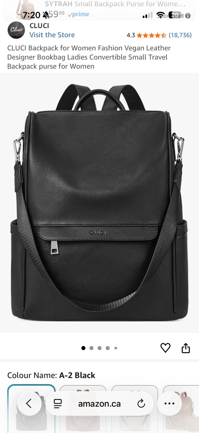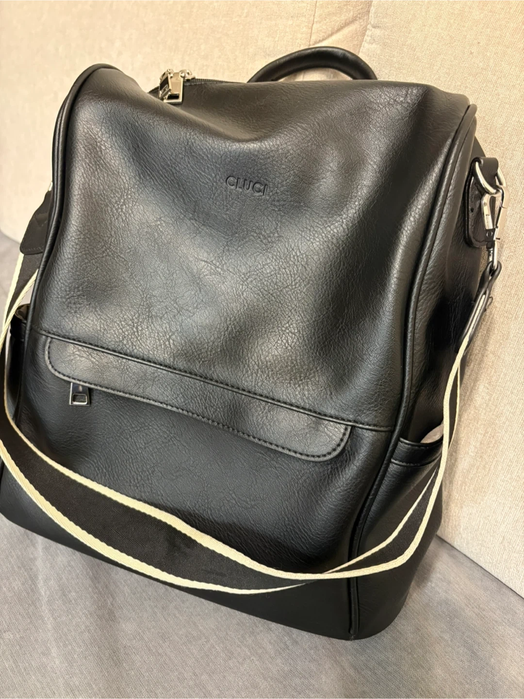 CLUCI black backpack. It's in like new condition and perfect for everyday use or travel. It has a stylish design and is made of vegan leather. From Amazon