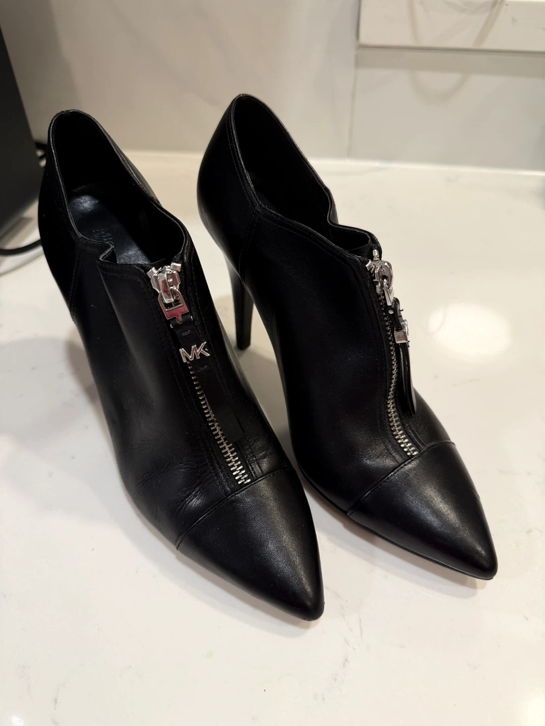 Selling a pair of Michael Kors black leather boots. They have a zipper detail in the front. Great for dressing up or down!