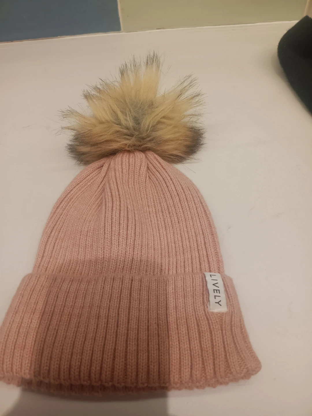 Cute pink beanie from Lively! It's in great condition and features a fluffy pom pom on top. Perfect for keeping warm and stylish during the colder months