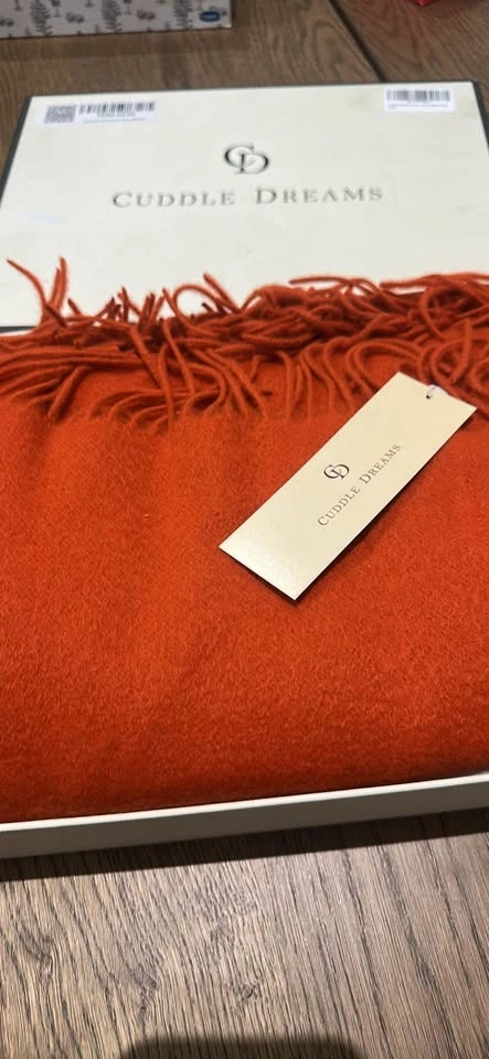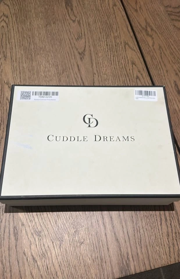 This is a premium cashmere throw blanket from CUDDLE DREAMS, featuring a lovely fringe detail. It's incredibly soft and luxurious, perfect for adding warmth and style to your home. Feel free to message if you have any questions!