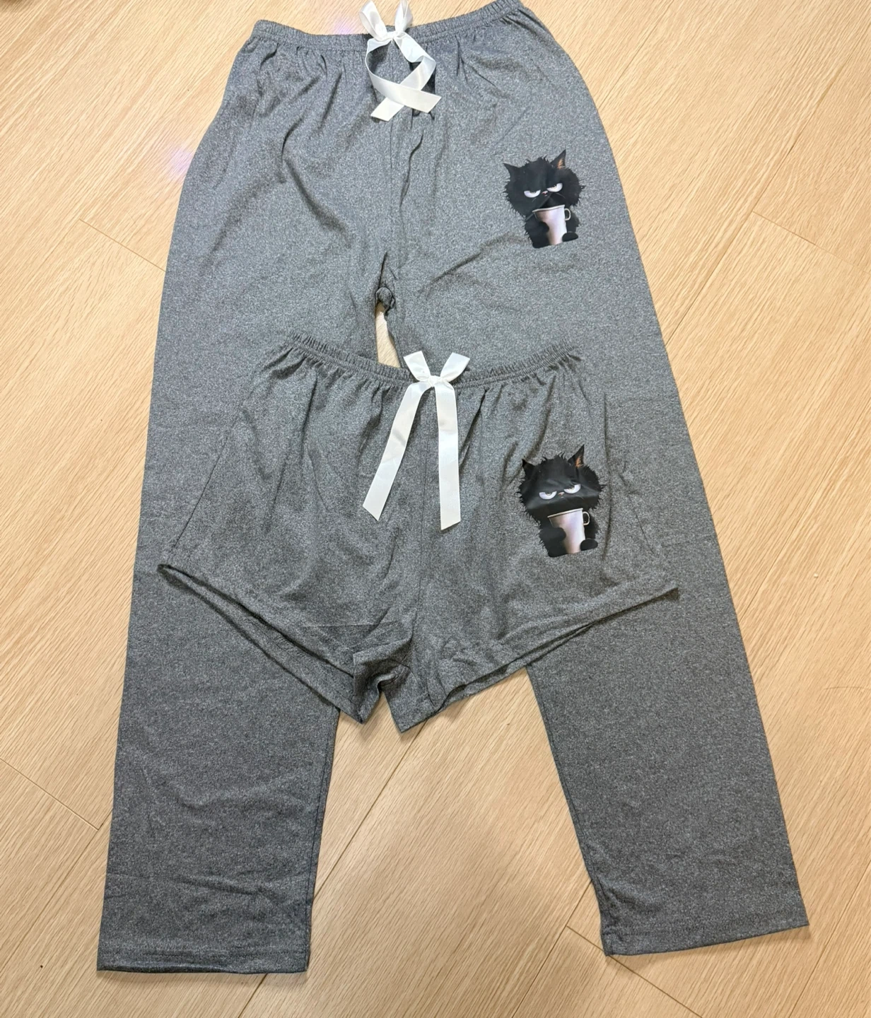 Cute grey pajama set with a grumpy cat print! Includes a t-shirt, long pants, and shorts. Size small and in great condition
