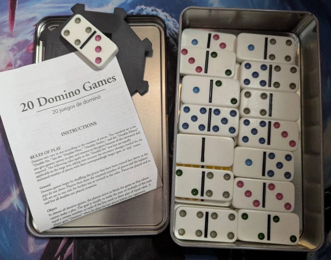 Selling a set of Cardinal Double Six Color Dot Dominoes! The set includes 28 colour dot dominoes and instructions. Suitable for ages 8+ and for 2-4 players. Great for family game night!