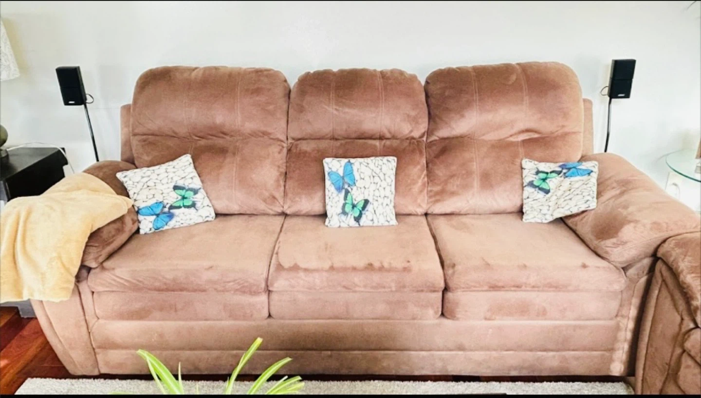 I'm selling a comfy 3-seater sofa and dual-seating loveseat set, perfect for a living/family room. Ready for pickup now!! It's gently used for only few years, but in excellent condition, with a soft, durable brown fabric.