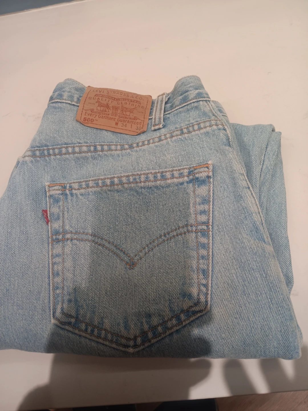 Selling a pair of Levi's 560 jeans in a light wash. These are the classic 560 Comfort Fit style. They are size W34 L30 and in good condition. Perfect for a relaxed and comfortable fit!