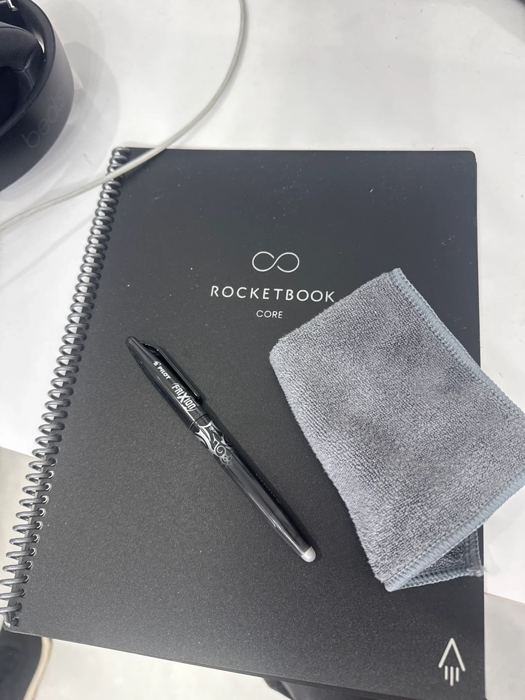 Selling a Rocketbook Core notebook. It comes with a Pilot Frixion pen and a cleaning cloth. Perfect for taking notes and easily digitizing them!