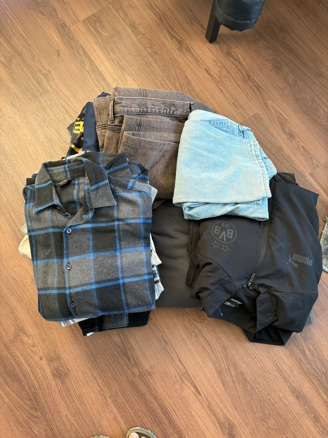 there’s shirts, button up shirts, workout clothes, jeans, pants, shorts