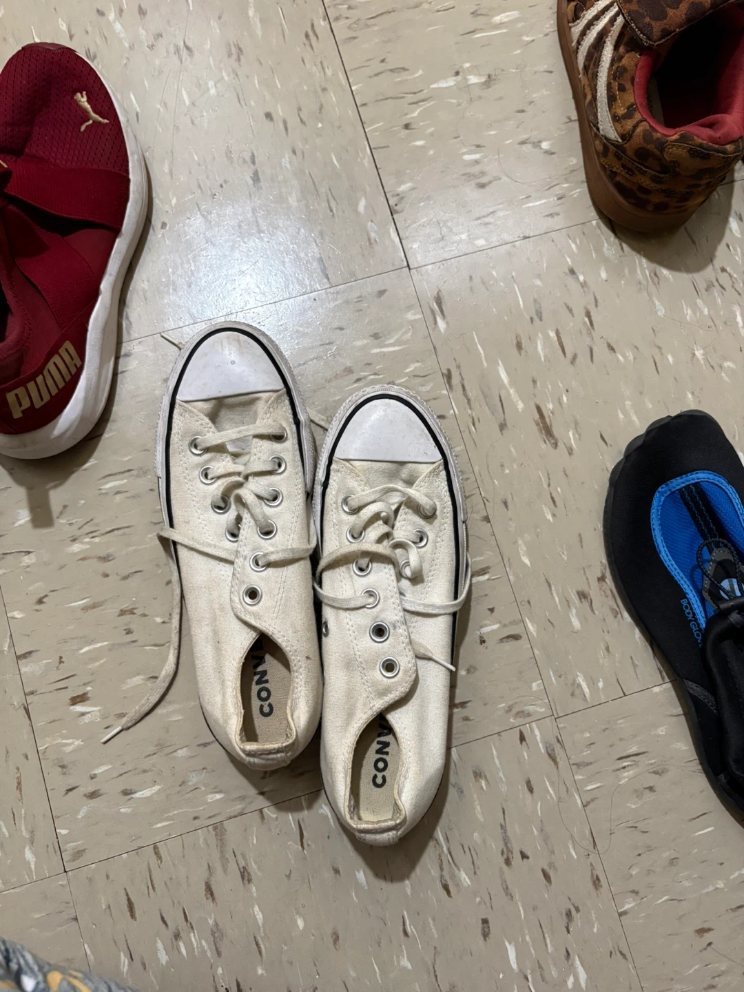 Free a pair of Converse All Star low top sneakers! They're a classic style and in a versatile off-white color. Perfect for everyday wear and in good condition