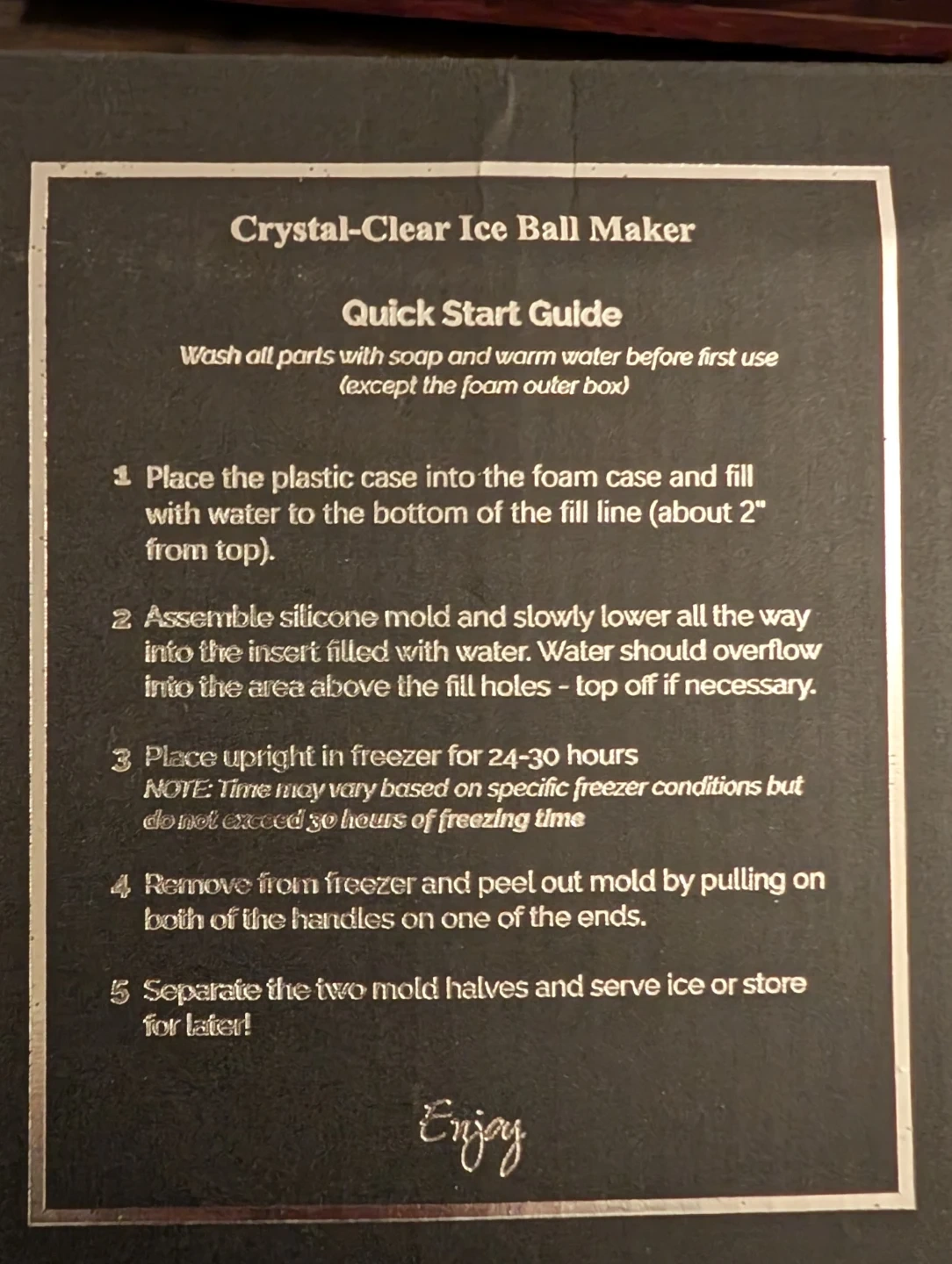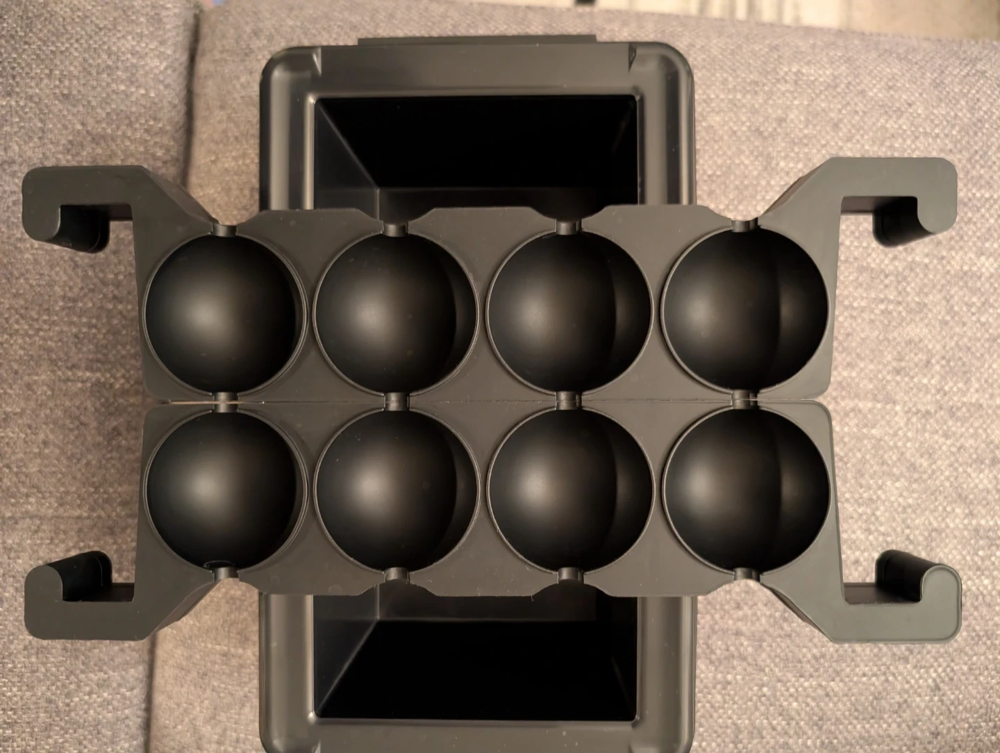Make perfect sphere ice cubes with this black ice cube maker! It's in great condition and ready to use for your next cocktail or drink. It creates eight ice spheres at a time.