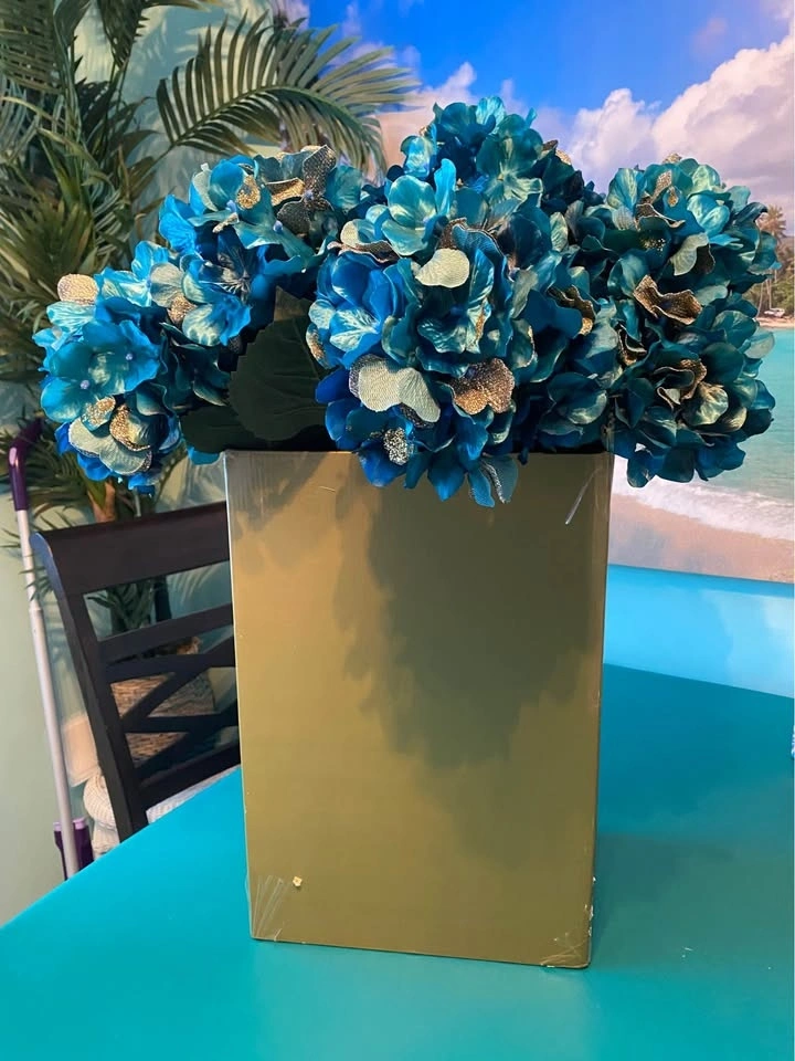 12 teal long stem hydrangeas with gold accents. Has 2 leaves with a brown stem. Great for decoration! Selling bunch of 12 for $45. Pick up only in Dovercourt Community (Northwest Edmonton). From a smoke and pet free home.