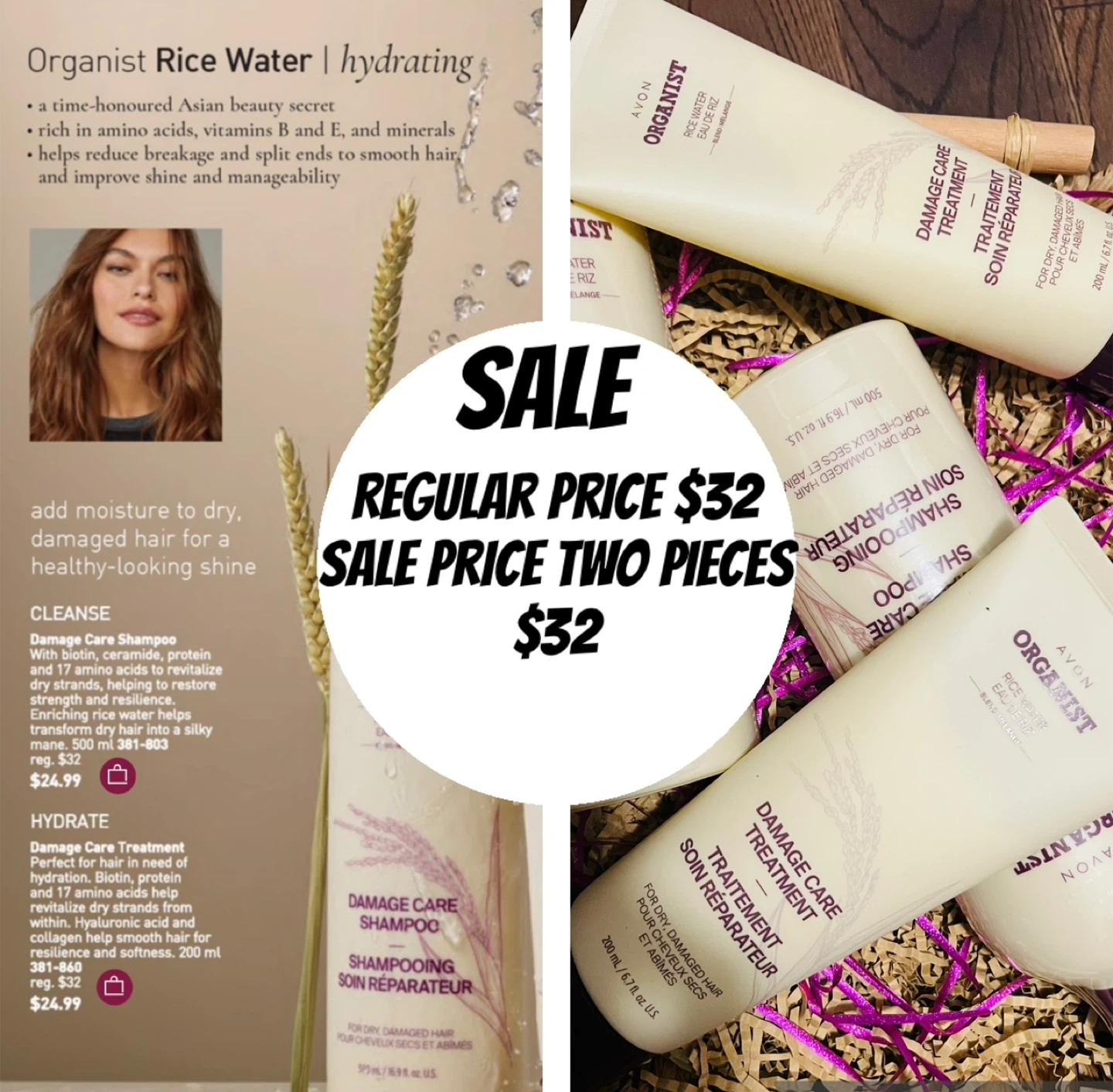 Get your hair looking healthy with this Avon Organist Rice Water set! It includes: