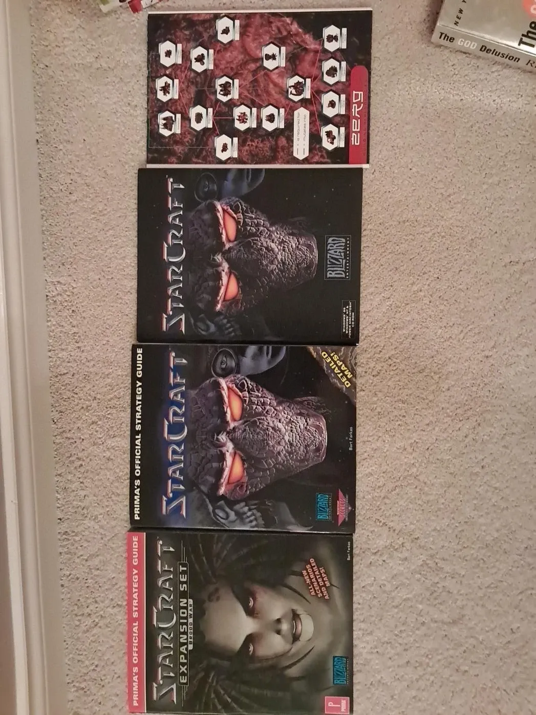 Selling a pristine vintage collection of StarCraft strategy guides and the expansion set guide by Prima.