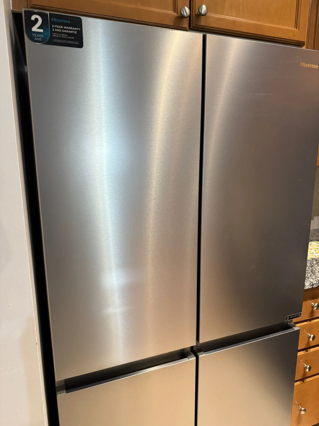 Selling a Hisense French door refrigerator in stainless steel. It features Dual-Tech Cooling and Inverter Technology. It also comes with a 2-year warranty on parts, as well as a 5-year sealed system and compressor warranty. Never used. Brand new refrigerator, opened only for inspection. Never used and still