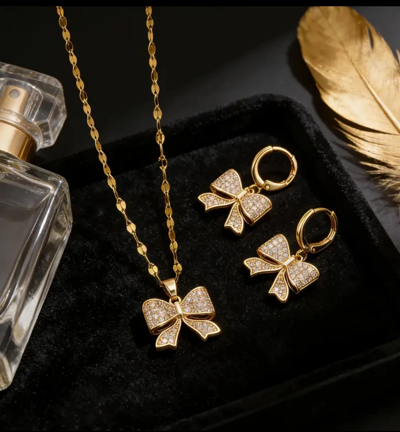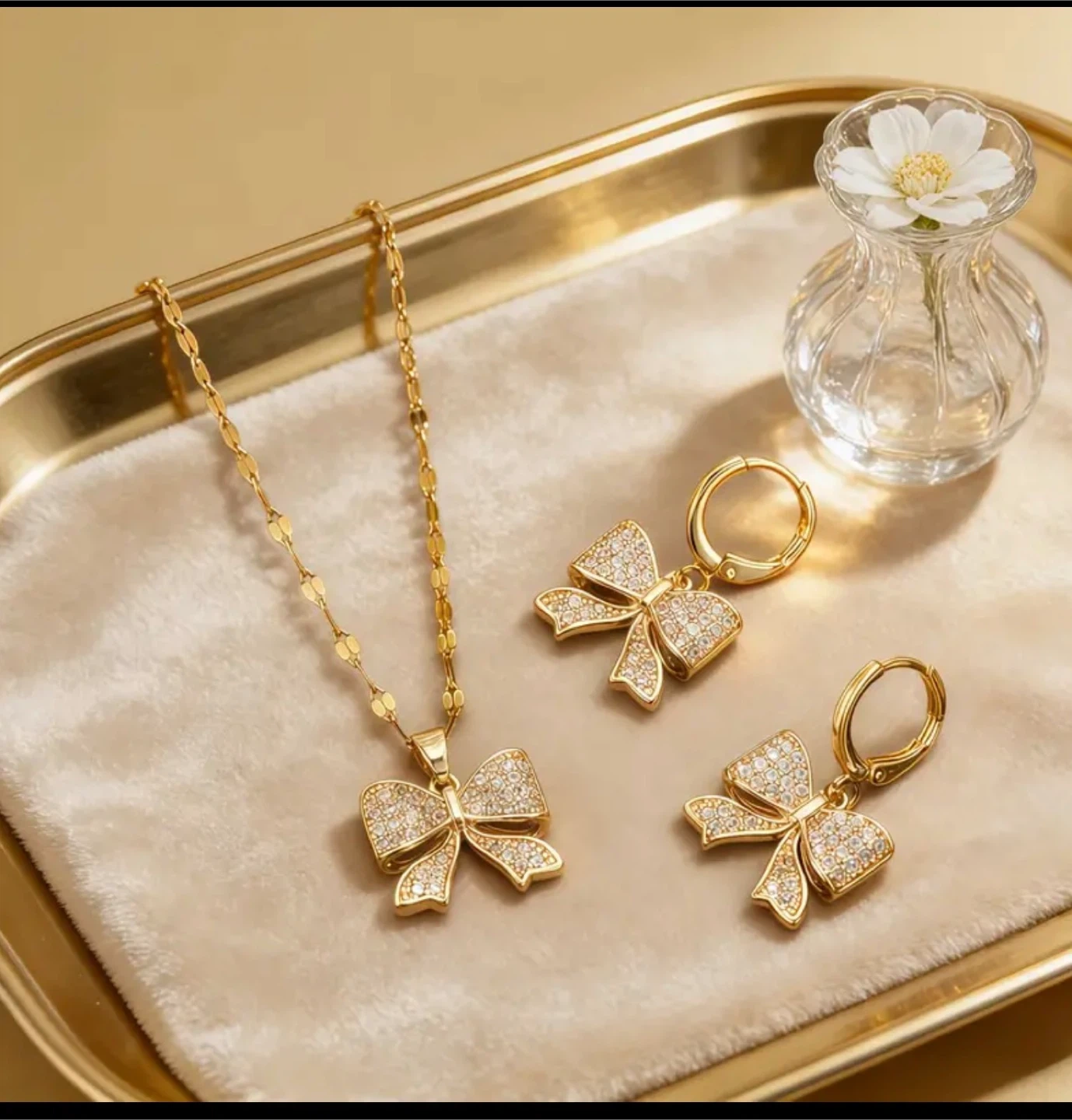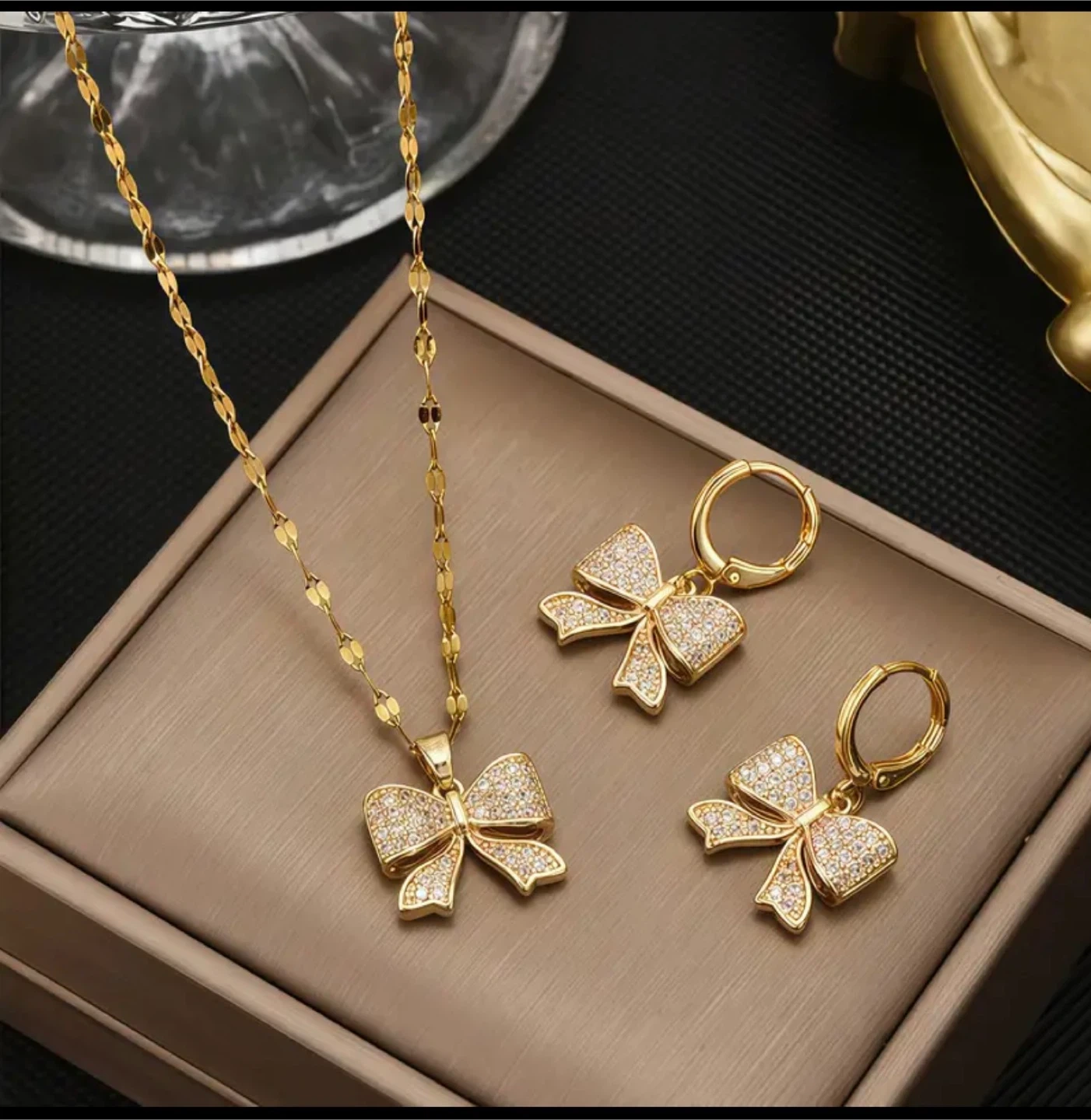 Gold Bowknot Necklace and Earring Set