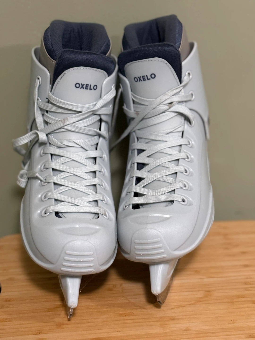 Selling a pair of Oxelo ice skates in great condition! They are a size 10.5 W (UK 8) Perfect for recreational skating at the rink or on the pond.