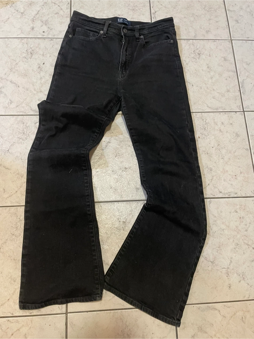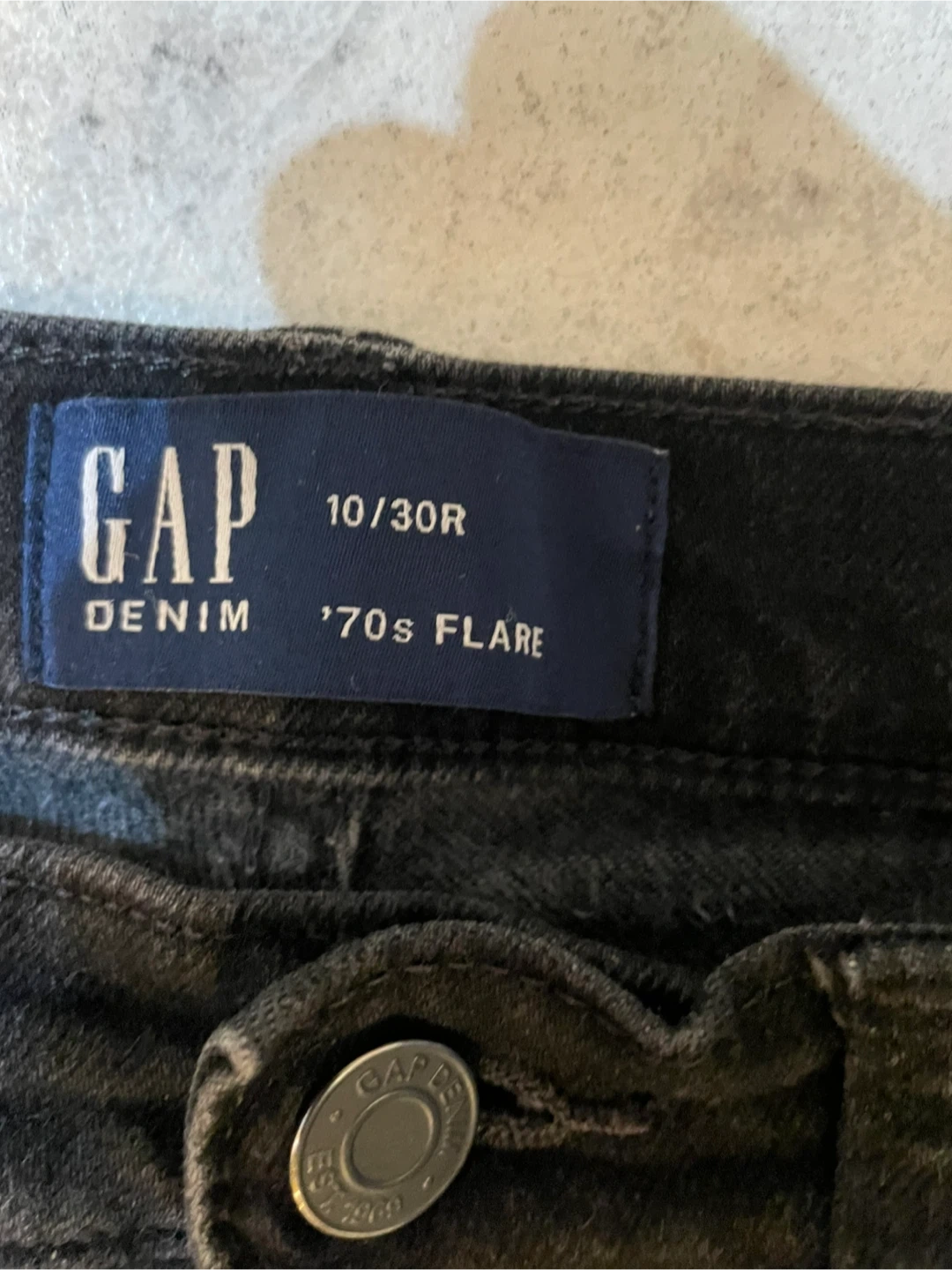 Selling a pair of GAP denim '70s flare jeans! They are a size 10/30R and in great condition. These jeans have a classic look and are perfect for adding a retro touch to your wardrobe