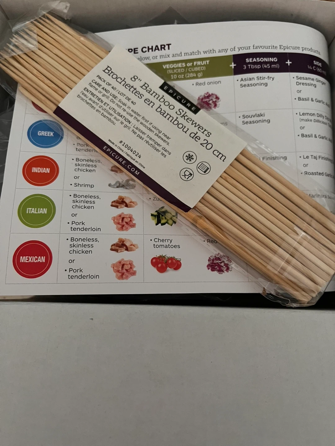 I'm selling a brand new Epicure Skewer Maker kit! It comes with a package of bamboo skewers and a recipe card to get you started.