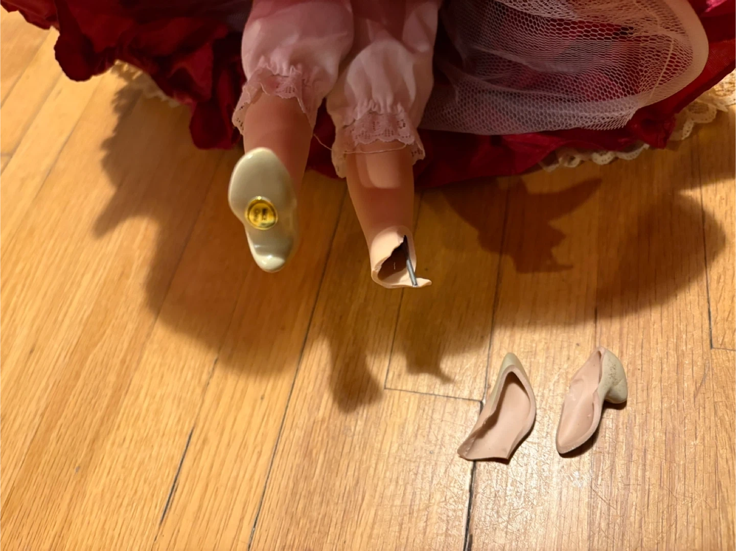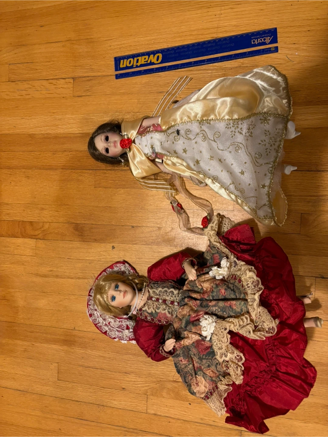 Two decorative porcelain dolls. They have some damage, as shown in the pictures. One doll has a broken leg , you can glue it if you want. The other one is good . 15$ get two both. Pickup at Morley trail NW