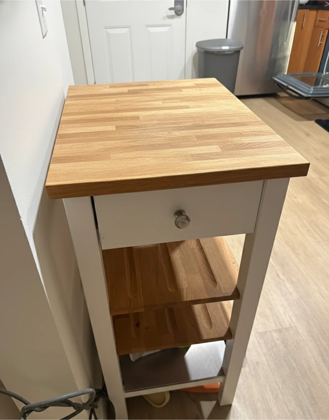 Buy & SellKitchen Island with Built-in Wine RackKitchen Island with Built-in Wine Rack$70Beautiful kitchen island with a built-in wine rack at the bottom. It’s perfect for extra counter space and storing your favorite bottles.WHERE TO MEETCheck LocationView MapSELLERverifiedLuminousHell's Kitchen22112 reviews1 chats·2 favorites·71 viewsSEND CHAT TO SELLERHi Luminous! I’m interested in your listing.Hi Luminous! I’m interested in your listing.Get the Karrot app to chatSign In to chat