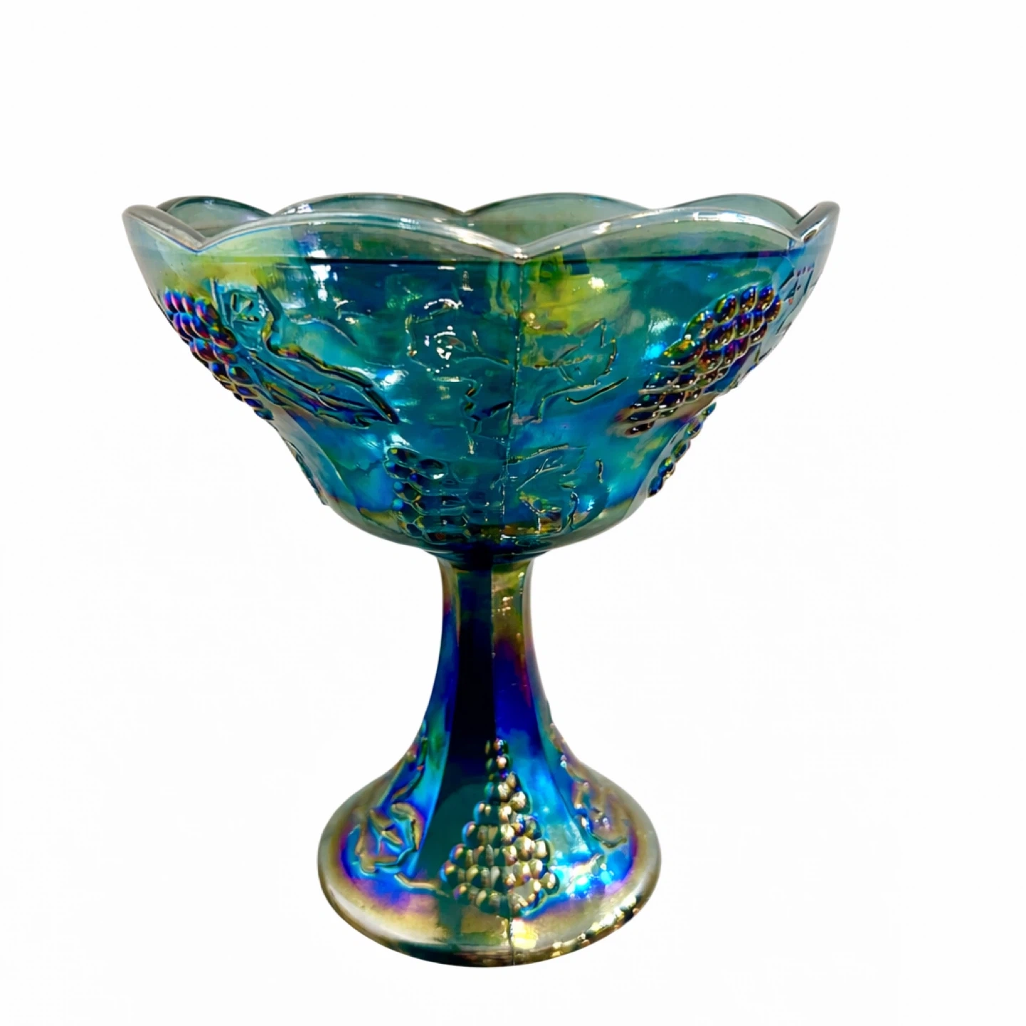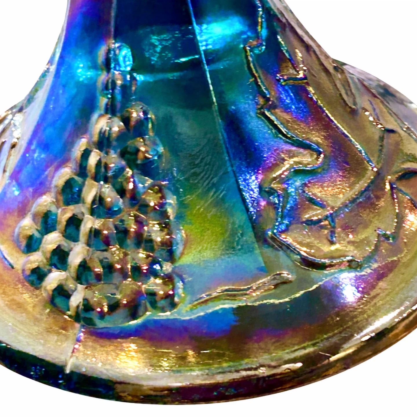Antique Uranium Carnival Glass Grapevine Compote 7.75