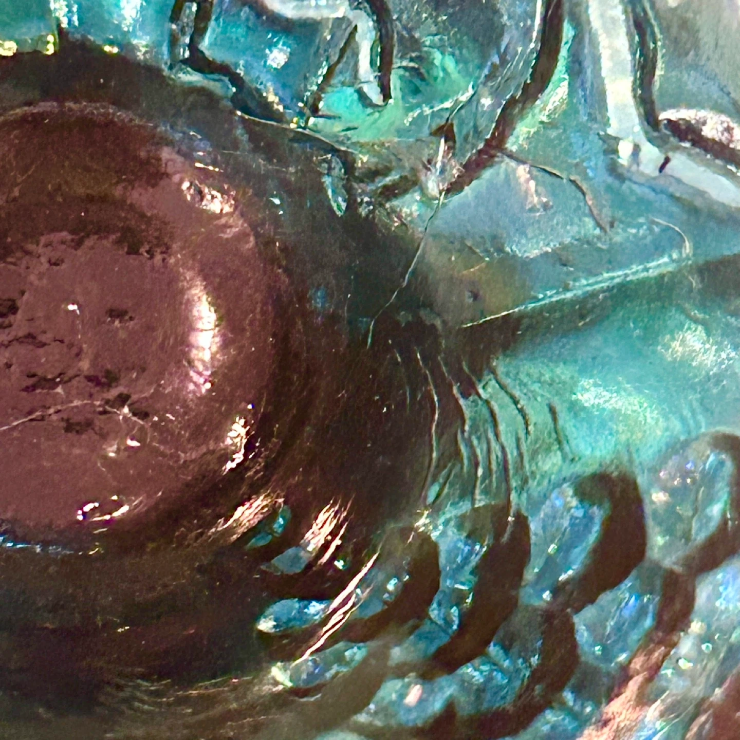 No chips, no cracks, no repairs observed. Iridescent finish presents with excellent clarity and strong color play.
