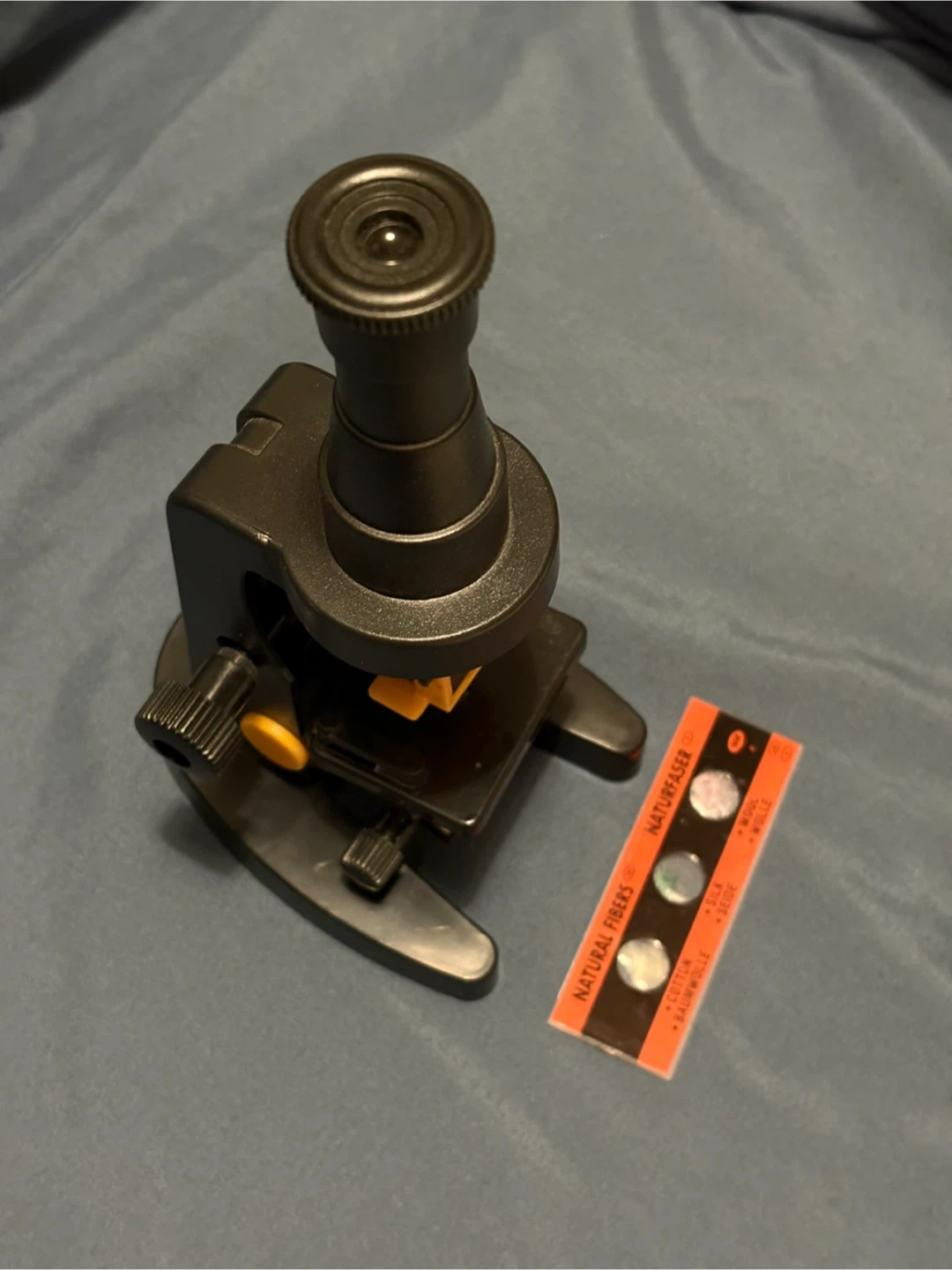 Selling a kids microscope that comes with slides of natural fibers! Includes cotton, silk and wool slides. Great for budding scientists and curious minds!