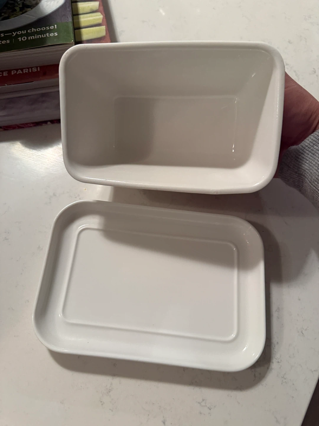 Selling a simple and elegant white ceramic butter dish. It comes with a lid to keep your butter fresh.