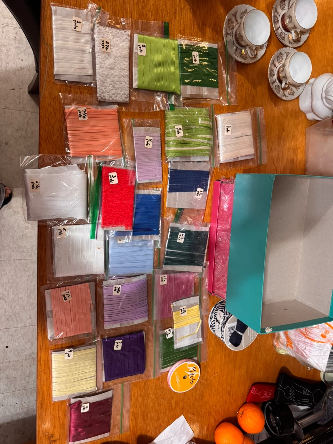 I have a lot of ribbon disks for sale! There are 70 ribbons in various colors and textures. Comes in a box, perfect for crafting or gift wrapping, the ones in bags have written measurements on it - measured in yards. I also have more ribbons I will be adding to my listings as well. And sewing machines.