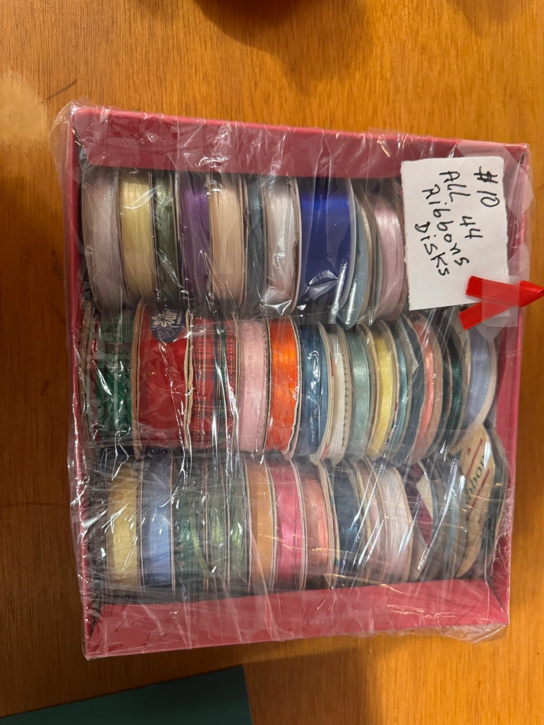 I have a lot of ribbon disks for sale! There are 70 ribbons in various colors and textures. Comes in a box, perfect for crafting or gift wrapping, the ones in bags have written measurements on it - measured in yards. I also have more ribbons I will be adding to my listings as well. And sewing machines.