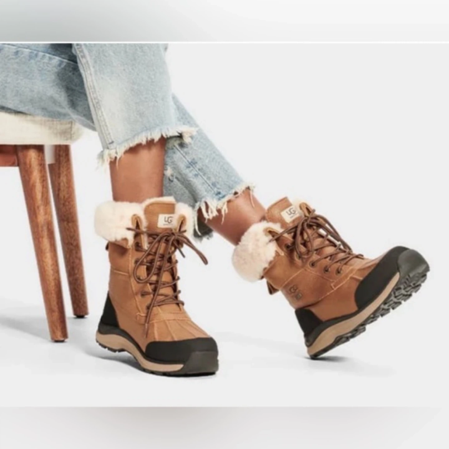 Cozy and stylish UGG Adirondack boots in chestnut colour! These waterproof boots are perfect for Canadian winters. They feature a soft, warm lining and a durable sole for great traction. Great for keeping your feet warm and dry!