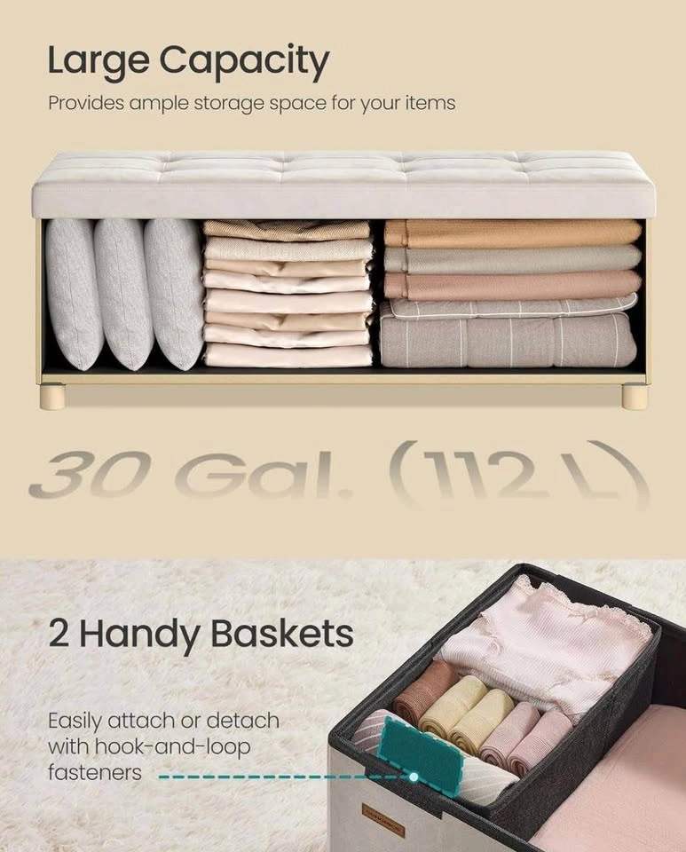 SONGMICS Storage Ottoman Bench - Large Velvet NEW IN BOX