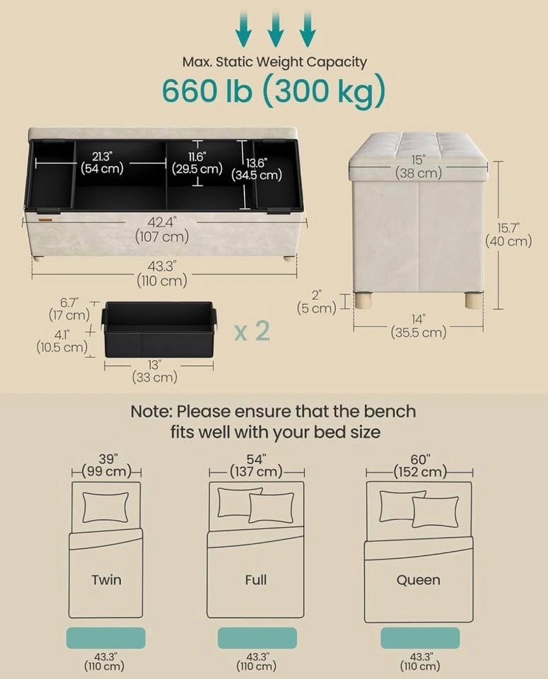SONGMICS Storage Ottoman Bench - Large Velvet NEW IN BOX