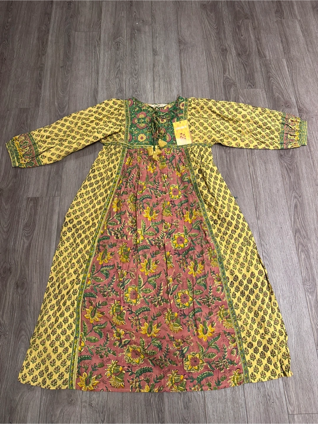 Selling this beautiful dress that adds a great addition to any wardrobe! The dress features a vibrant floral pattern in yellow, pink, and green. It's perfect for a casual day out or a special occasion. It’s pure cotton and with tags. Never worn and brand new.