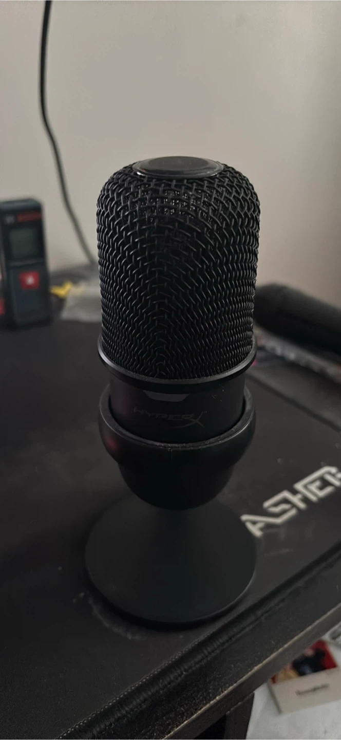Selling a HyperX SoloCast USBC microphone in black. Great for gaming, streaming, or recording podcasts. It's in good condition and ready for a new home!