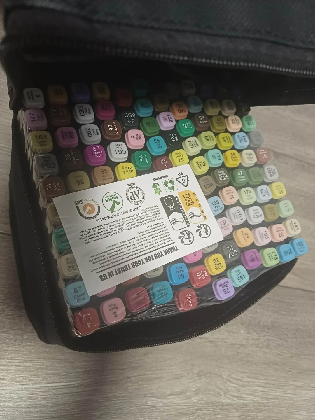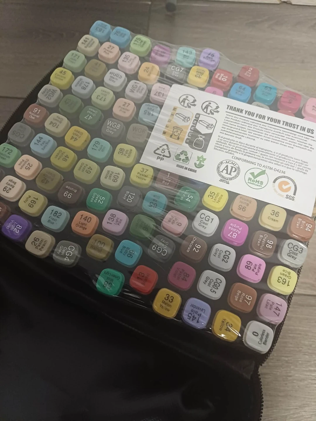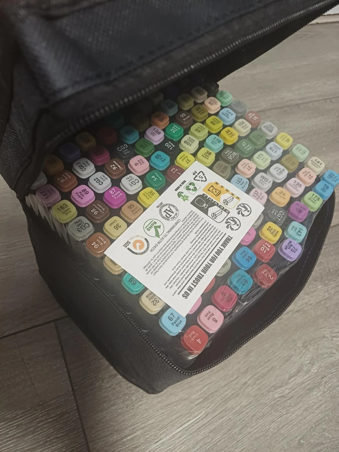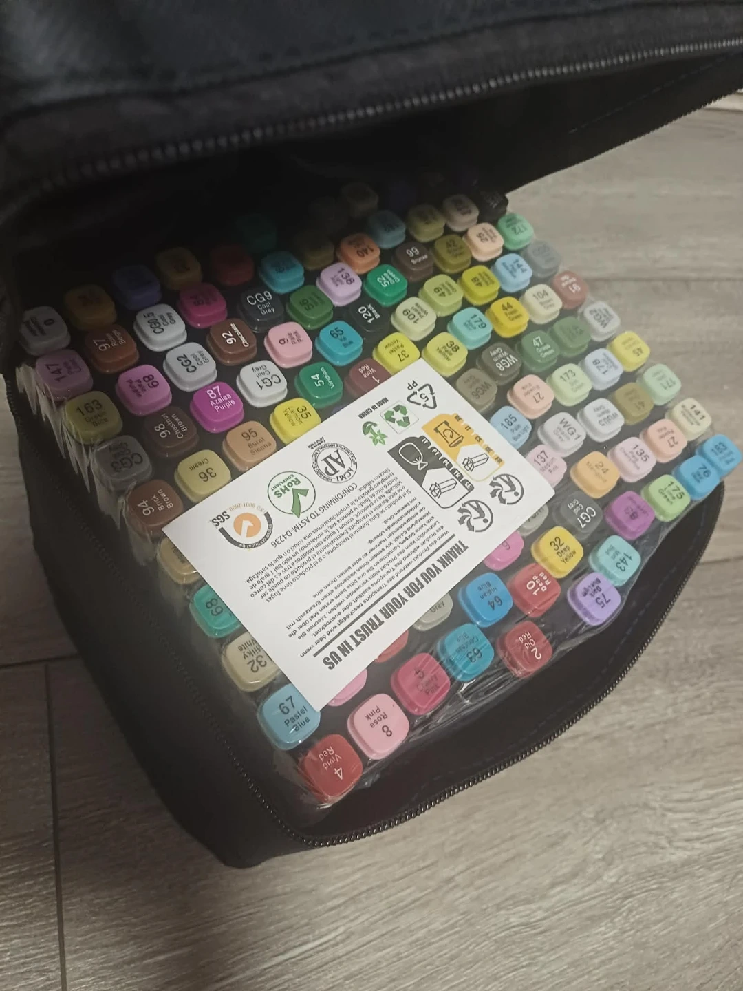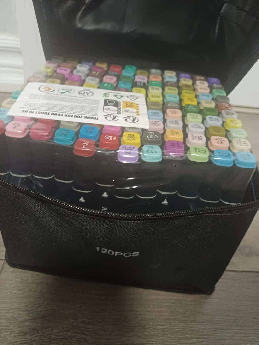 Selling a set of 120 art markers that come in a convenient carrying case! Great for artists of all levels, these markers are perfect for drawing, sketching, and colouring. They conform to ASTM-D4236 standards, ensuring quality and safety for your creative projects