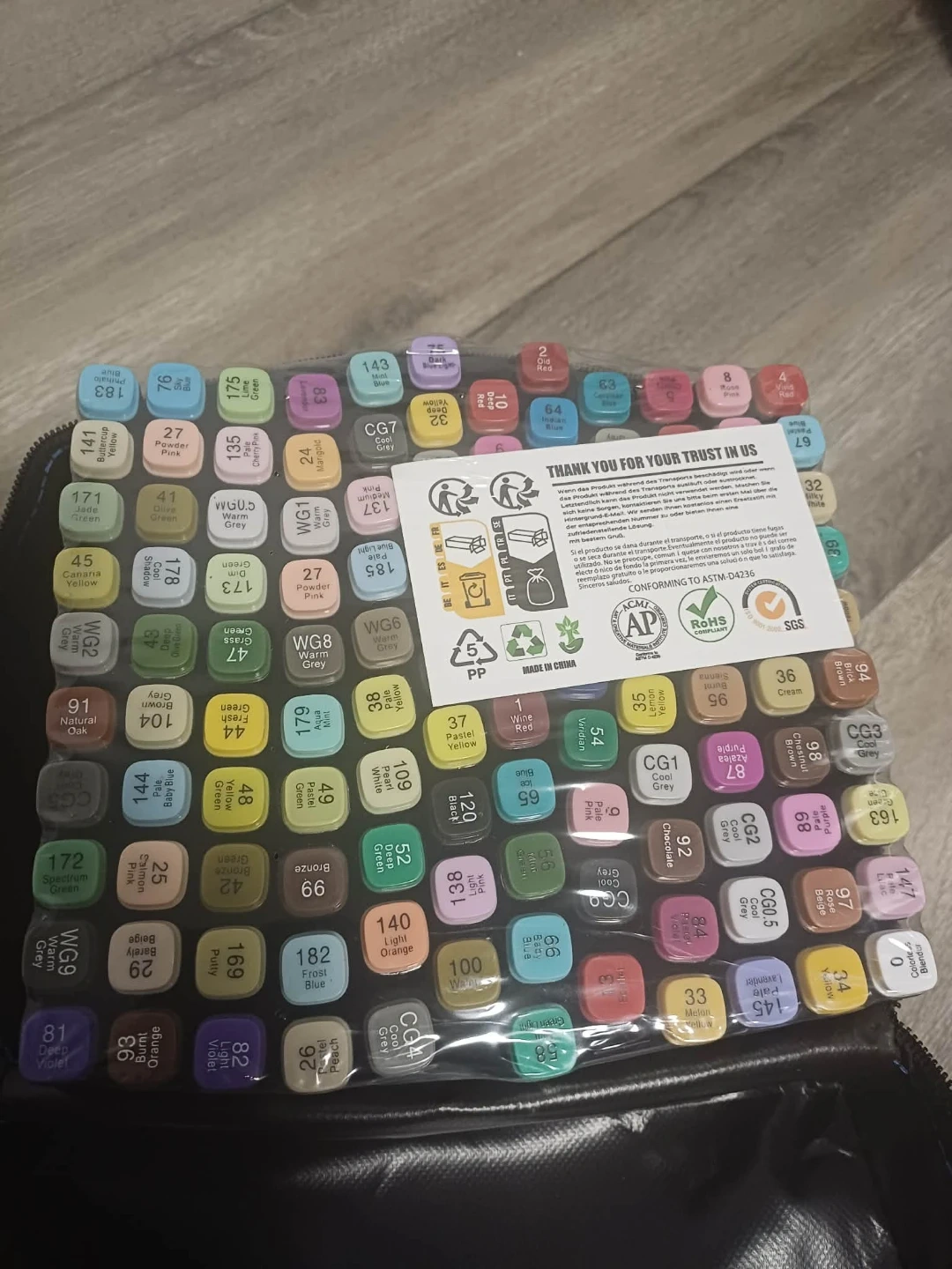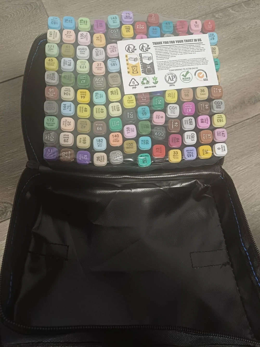 Selling a set of 120 art markers that come in a convenient carrying case! Great for artists of all levels, these markers are perfect for drawing, sketching, and colouring. They conform to ASTM-D4236 standards, ensuring quality and safety for your creative projects