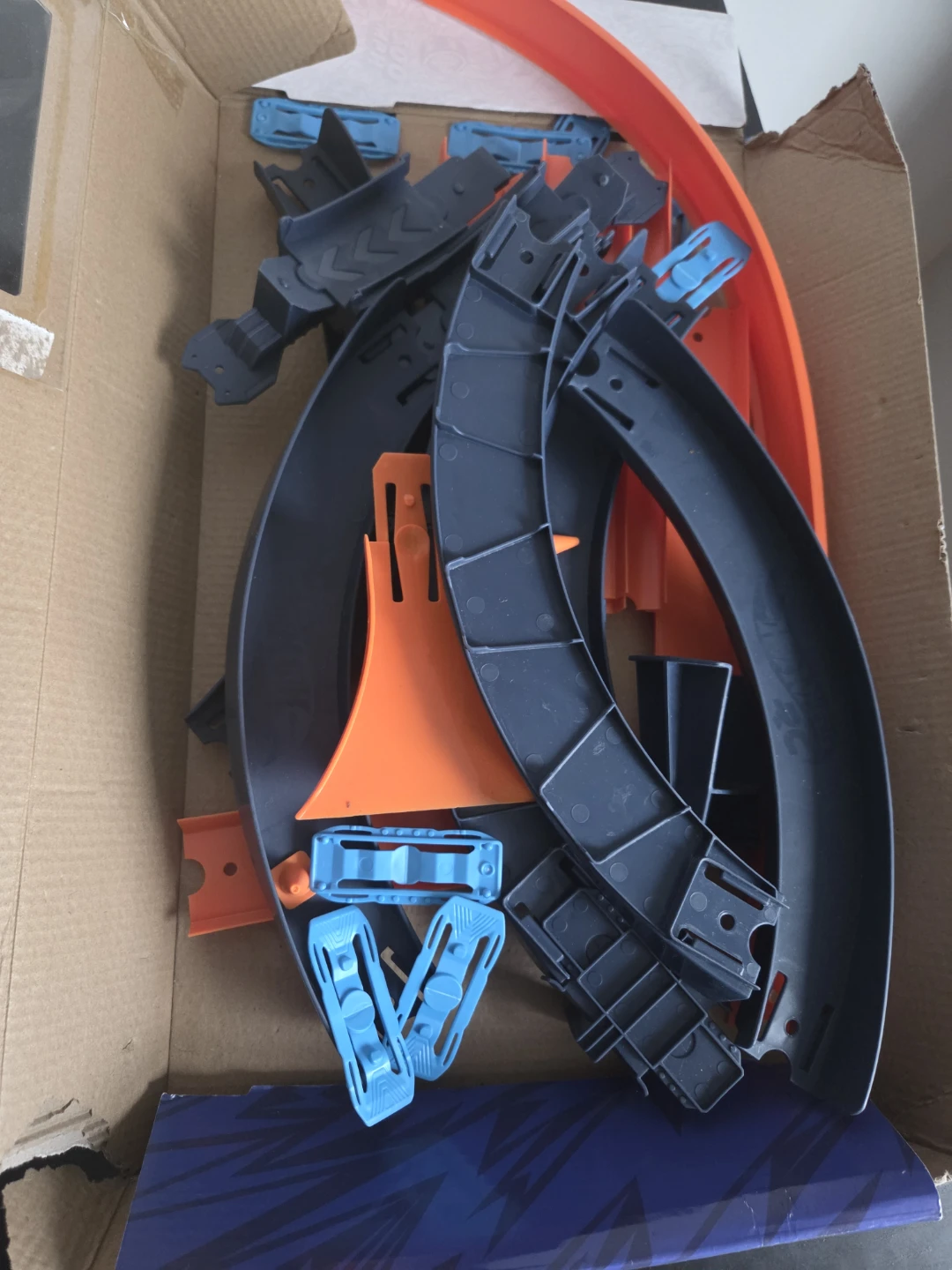 This Hot Wheels RC Speed Challenge track set includes various track pieces for exciting races. It's designed for remote control car fun. The set appears to be complete with all the track components shown.