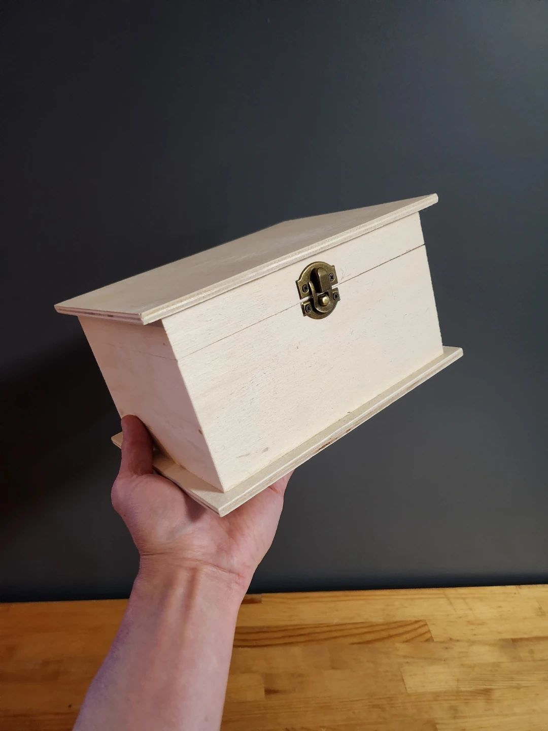 Unfinished wooden box. These boxes are designed for DIY projects such as painting, staining, or decorating.