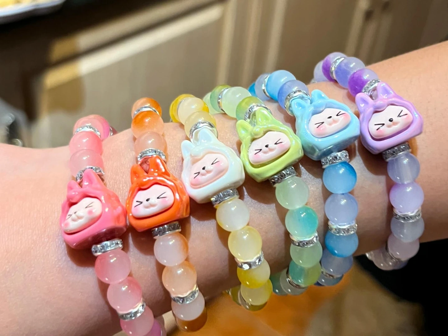 I'm selling these adorable handmade beaded bracelets! They feature a cute bunny charm and colourful beads. Perfect for adding a fun touch to any outfit!