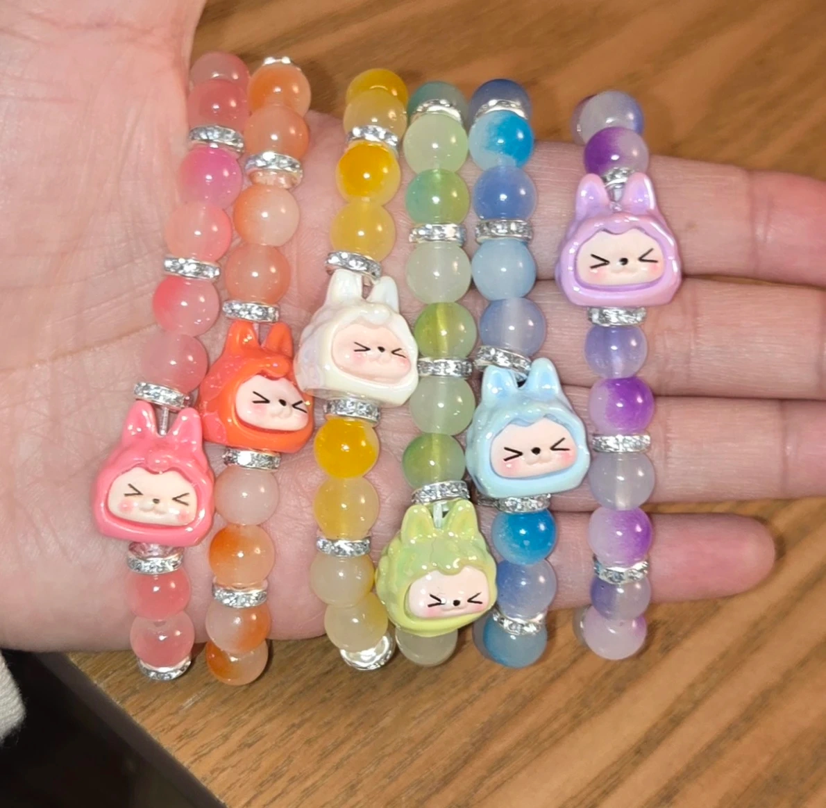 I'm selling these adorable handmade beaded bracelets! They feature a cute bunny charm and colourful beads. Perfect for adding a fun touch to any outfit!