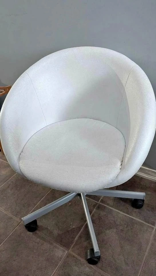 Modern swivel chair on wheels. Comfortable and compact — great for home office, vanity, or desk. Used condition with normal signs of wear (see photos). Selling as-is — feel free to test at pickup. Pickup in Stouffville.